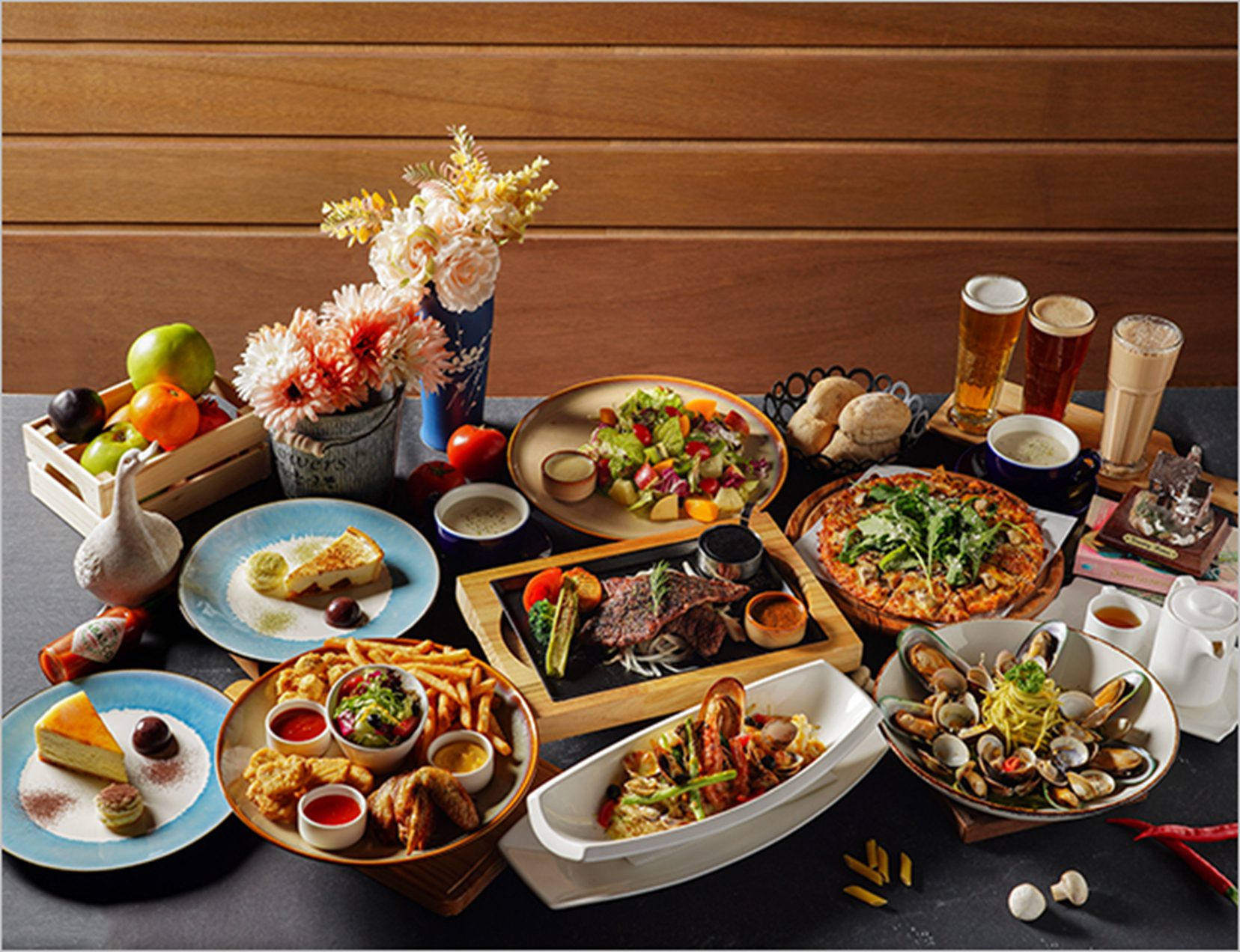 洋城義大利餐廳主打品味義式料理,經典與創新兼具的菜單滿足多元需求。招牌菜色如「鄉村鑄鐵牛肉燉飯」,以鮮嫩多汁的澳洲牛排與精選季節時蔬,佐以熬煮數小時的濃郁特製紅醬,讓每一粒米飯吸收豐富風味。上桌時散發迷人香氣,搭配蔬菜的脆嫩口感,層次豐富且飽足感十足。;以及「青醬蛤蠣義大利麵佐法式淡菜」,經典青醬結合新鮮蛤蠣與紐西蘭進口淡菜,融入特調義大利橄欖油與蒜香,讓義大利麵條每一口都裹滿濃厚醬汁。搭配滑嫩的海鮮與微脆的野菇,完美詮釋義式海洋風味。