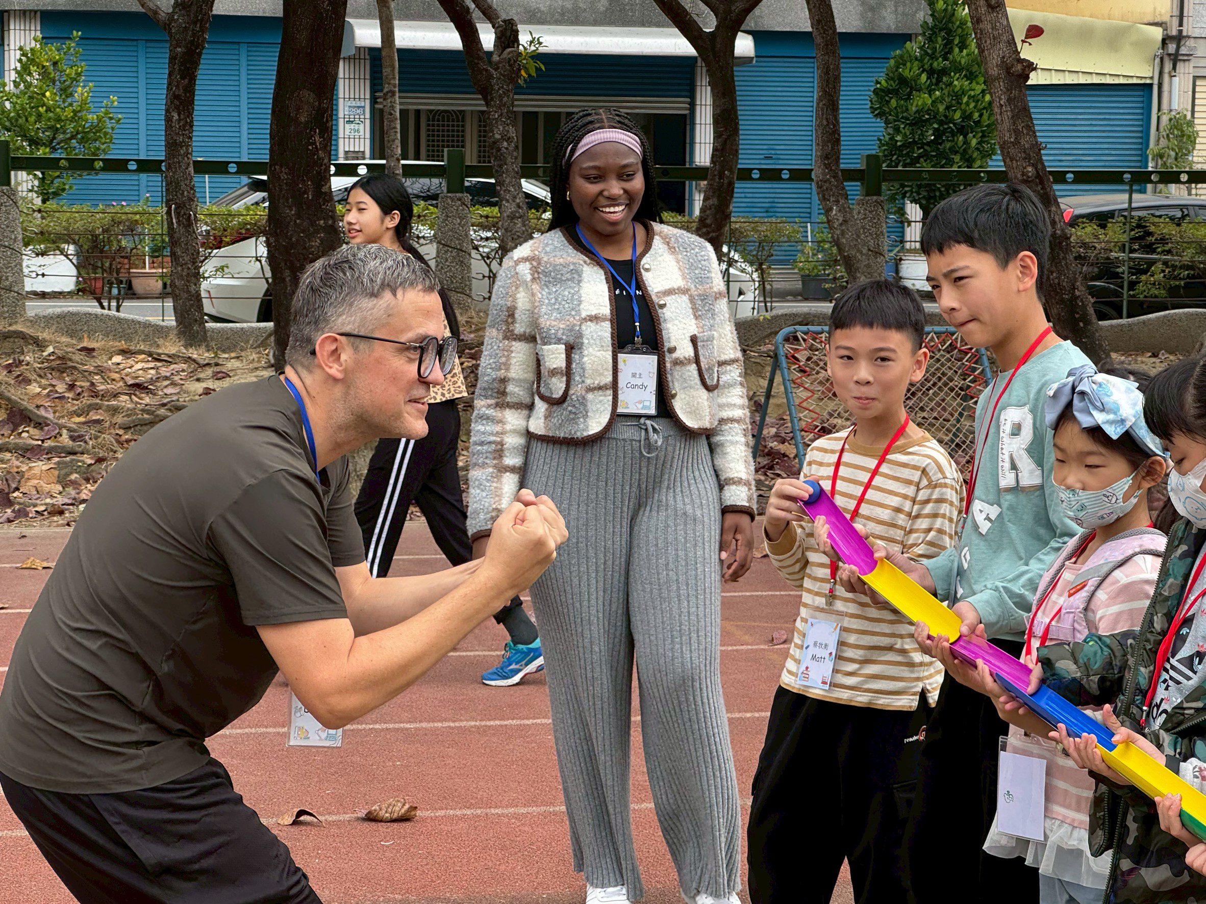 不同於傳統課堂,蔡文國小此次把校園打造成「英語樂園」,規劃體育挑戰、創意勞作、表演藝術、科學探索等多元主題關卡,每一站都由外籍教師擔任關主。學生必須用簡易英語提問、回答、合作,才能順利過關。活動刻意淡化考試與背誦壓力,讓語言成為完成任務的工具,而不是負擔。