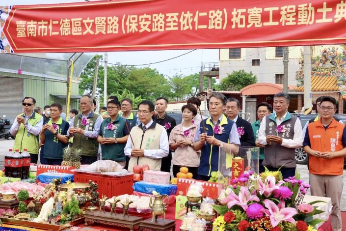 【記者郭忠淵/台南報導】 為提升仁德地區交通量能,台南市政府推動「仁德區文賢路拓寬工程(保安路至依仁路)」,台南市長黃偉哲(7)日主持動土典禮,祈求工程平安順利,並期許工務團隊如質如期完工。黃偉哲表示,文賢路拓寬工程全長約2.87公里,總經費高達12.65億元,由中央補助5.88億元,市府自籌款為6.77億元,顯見地方對此重大建設的決心。他特別感謝立委及在地議員的支持,透過中央與地方合作,才能順利推動這條串連十三甲、保安、德南及中洲地區的南北向交通大動脈。